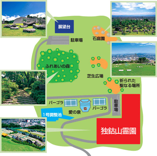 独鈷山霊園を有する祈りの丘公園では、ふれあいの森、展望台、自然の石庭、愛の泉など様々な自然や風景が楽しめるほか、更なる情操教育の一貫として中央道路に特別ステージを設置し、いろいろな野外イベントの場として広く一般に開放し、自然といったいになれるロケーションでの野外コンサートや舞台芸能などの場としてご利用いただけます。