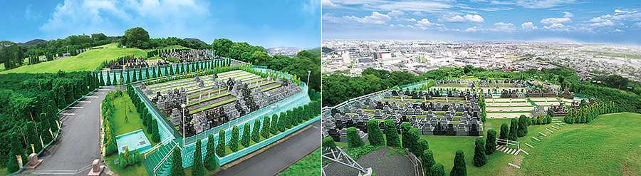 陽当りもよく風が心地よいこの霊園は、徹底した管理のもと、明るく清潔な、皆さまの魂の安住の聖地として永遠に続いていくことでしょう。故人への尊い気持ち、祈ることの大切さを感じさせてくれる霊園です。